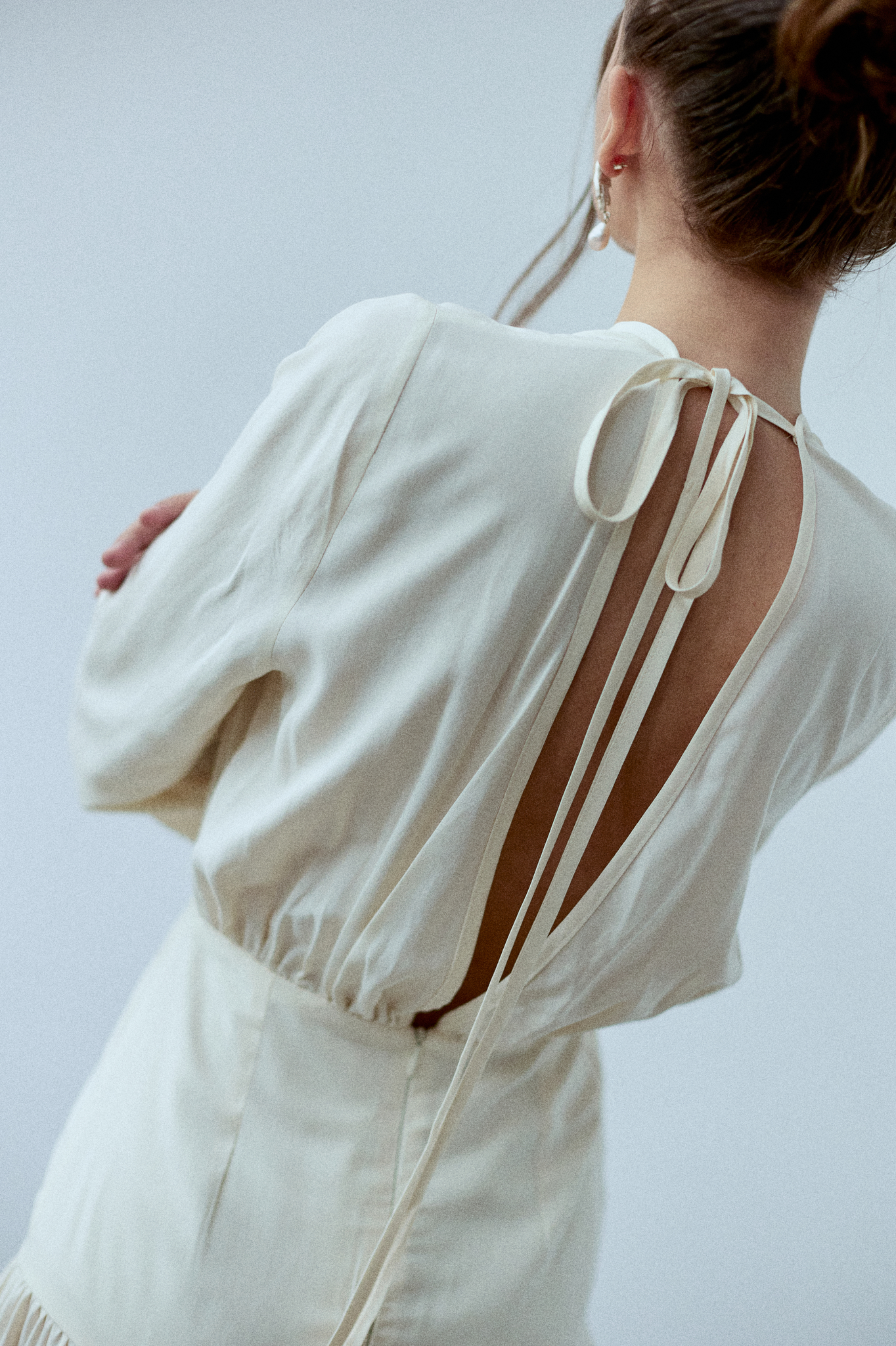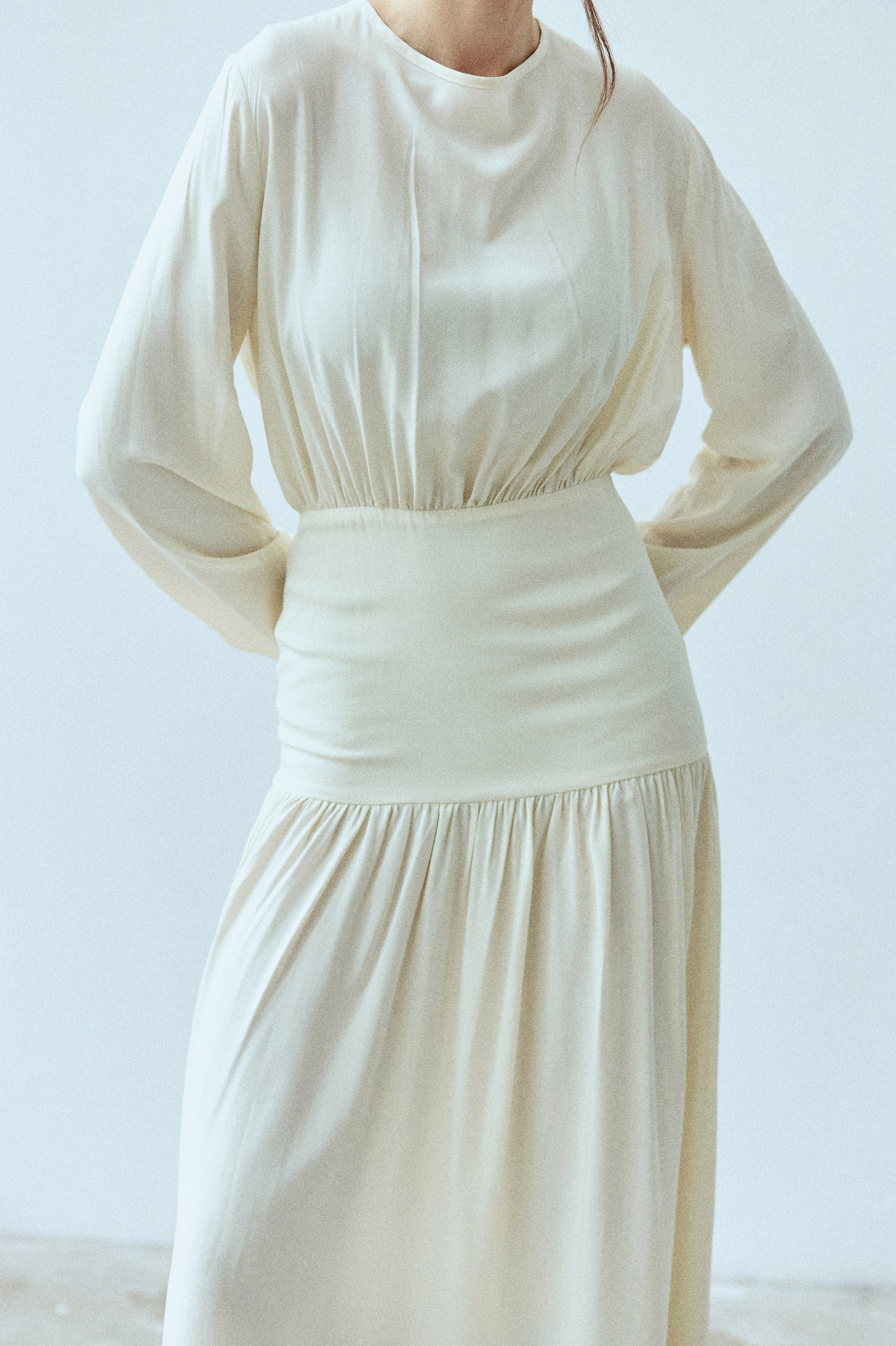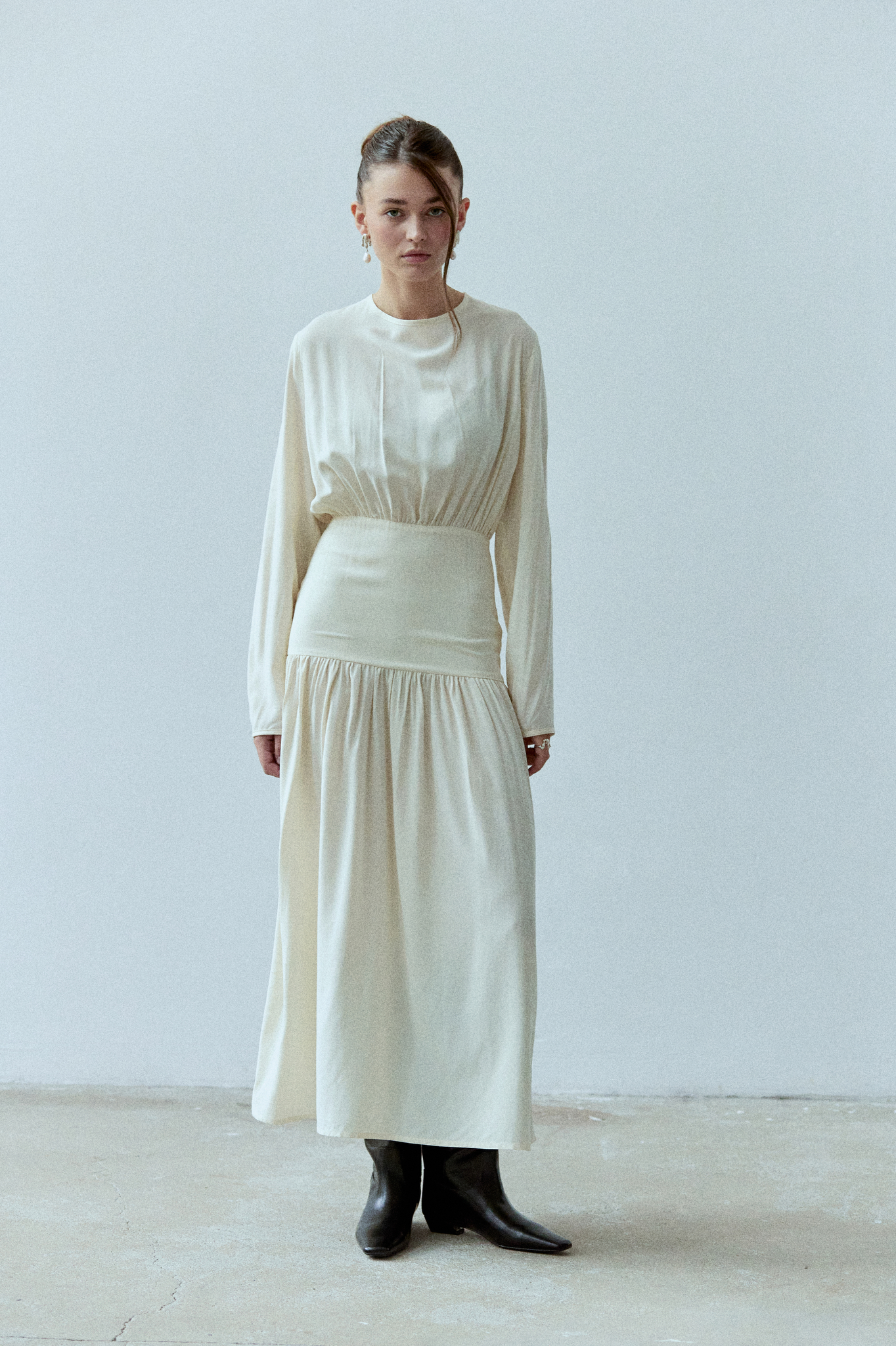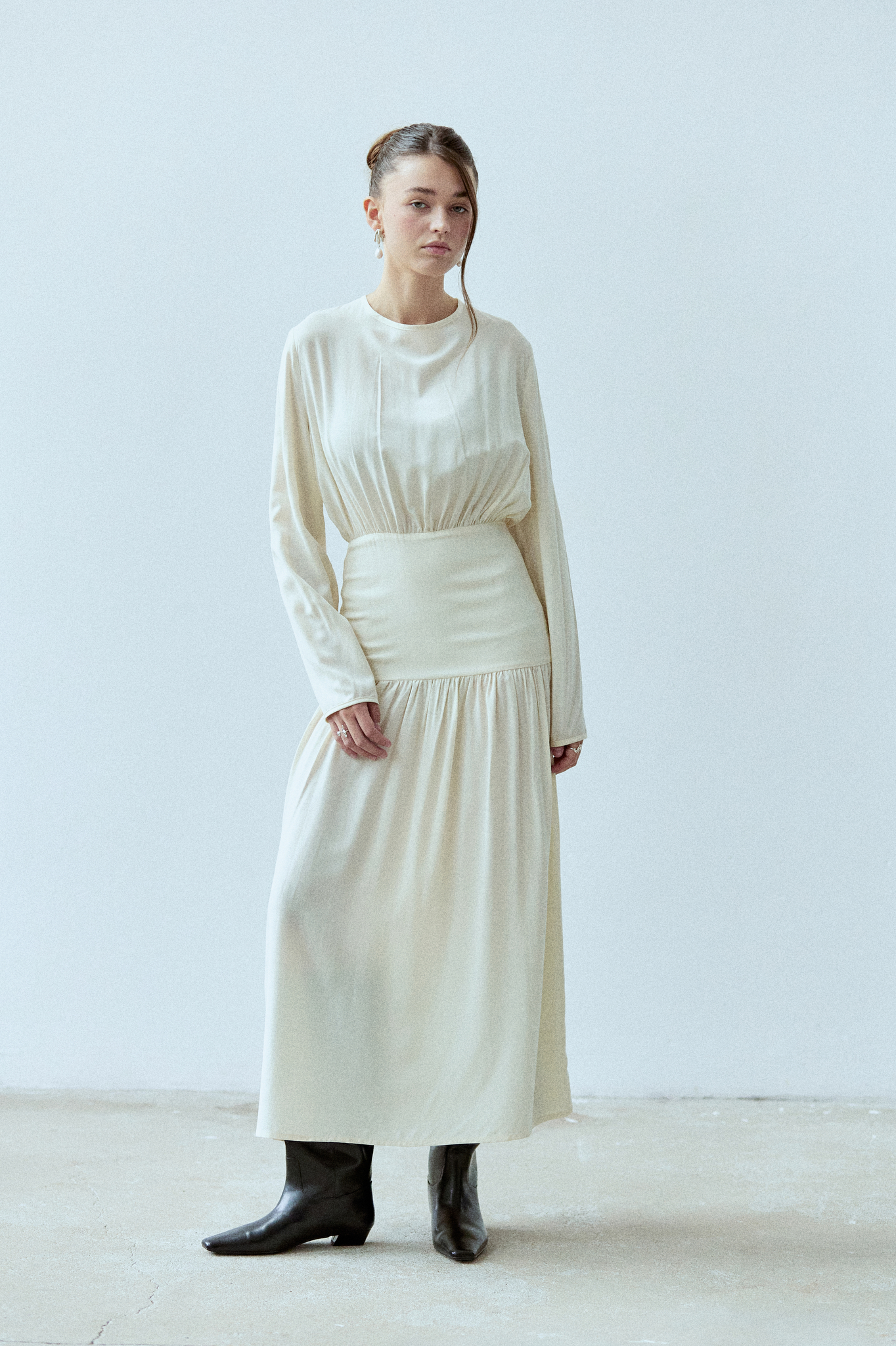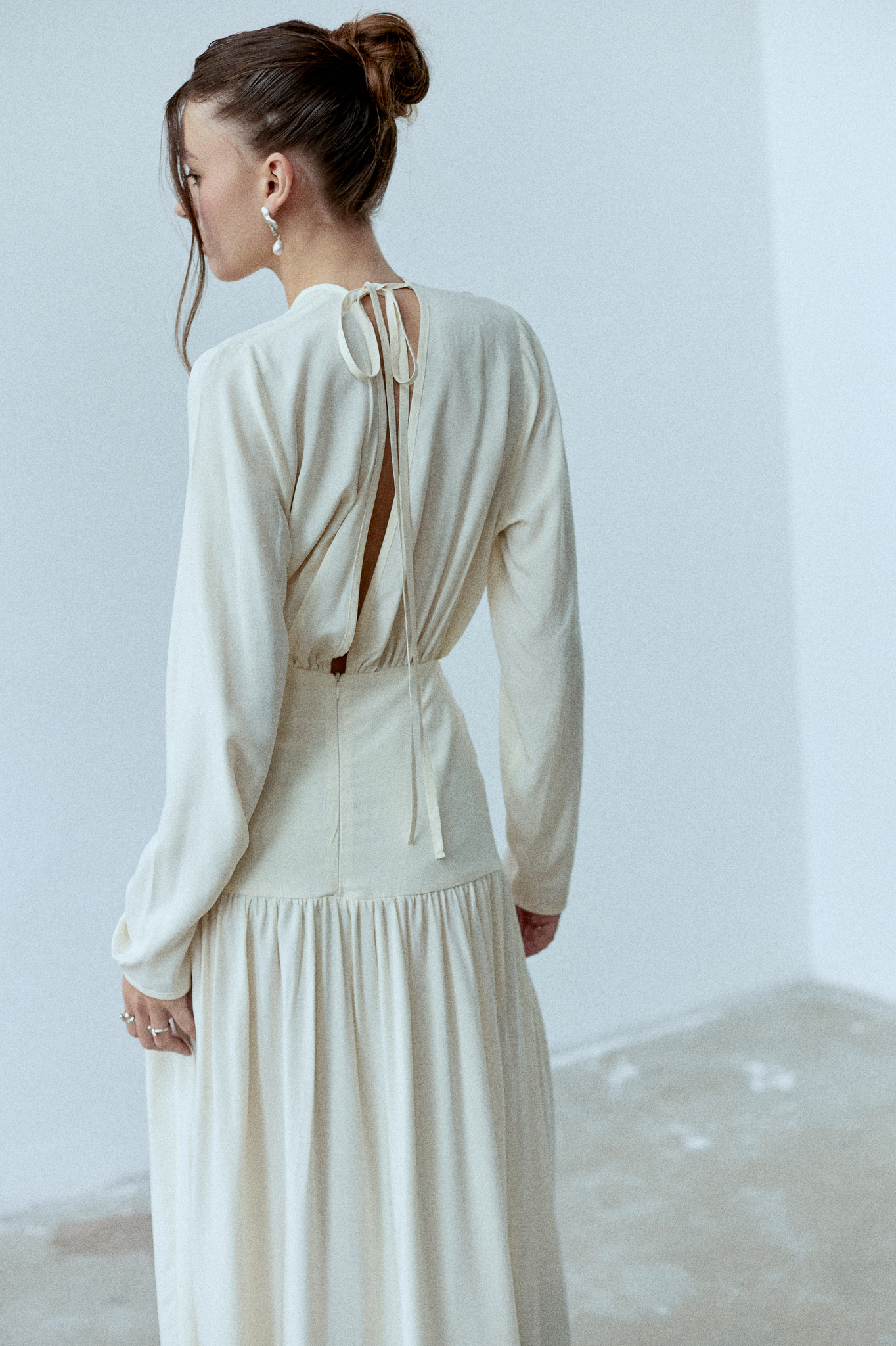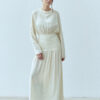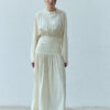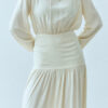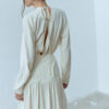 Sukienka Rixa to kwintesencja kobiecości w nowoczesnym wydaniu. Ma długi rękaw i efektowne wycięcie na plecach. Podwyższony stan subtelnie podkreśla talię, a dopasowany krój płynnie przechodzi w romantyczne marszczenia. Podwójny karczek gwarantuje idealne dopasowanie, dzięki czemu sukienka sprawdzi się zarówno w dziennych stylizacjach, jak i podczas wieczornych wyjść. Sukienka projektem nawiązuje do spódnicy Selene.