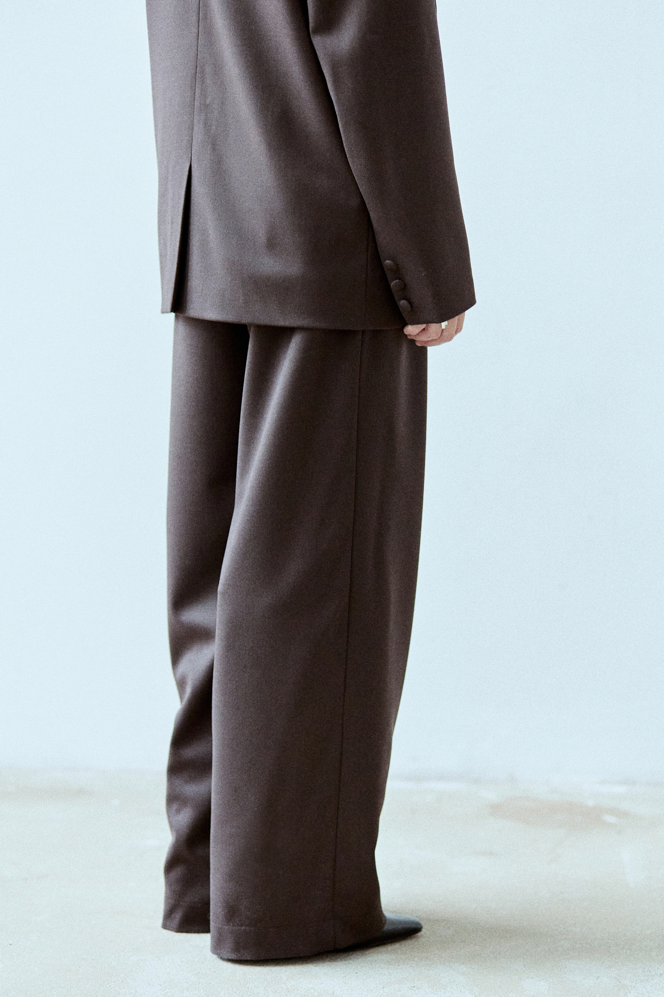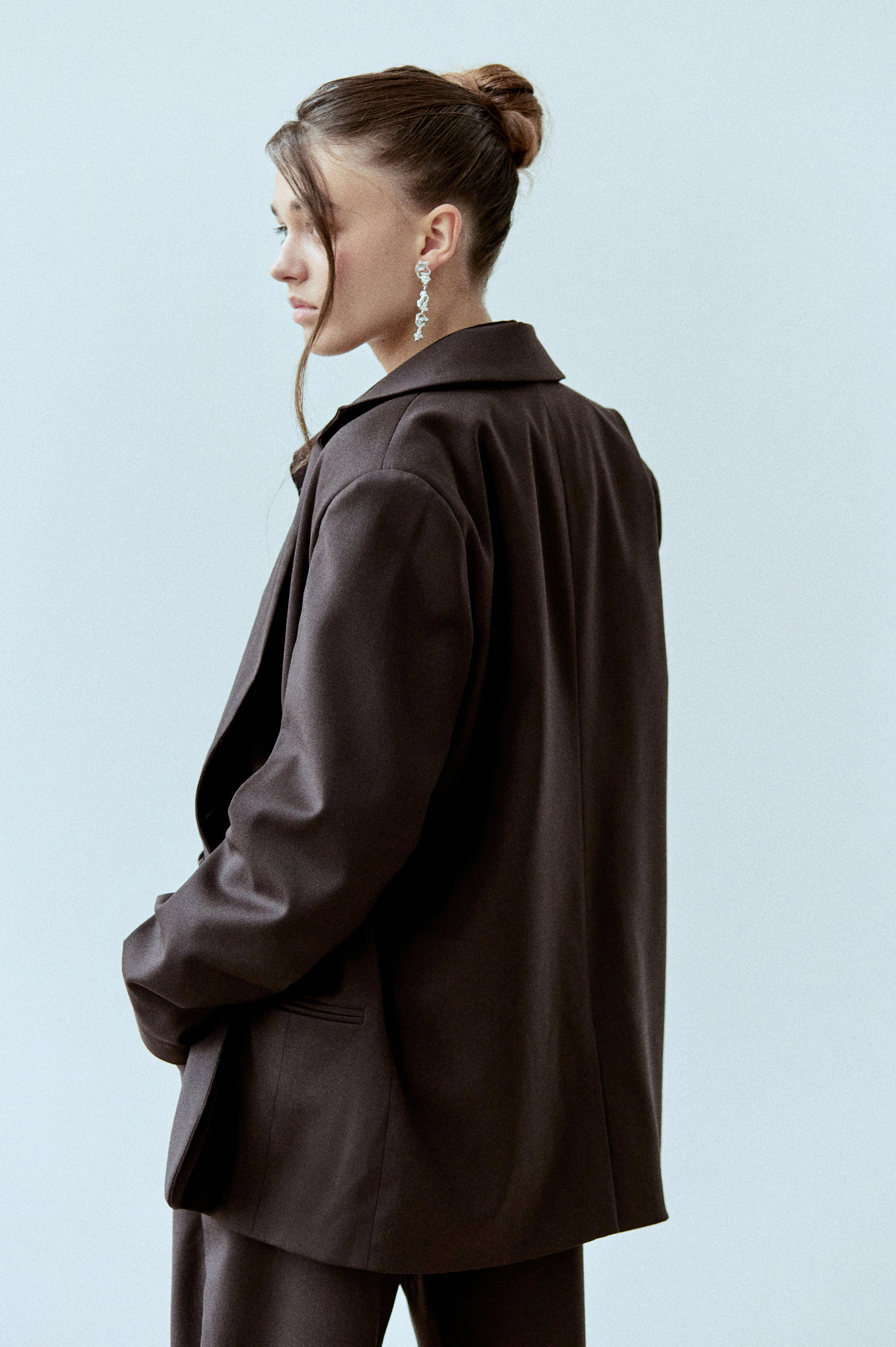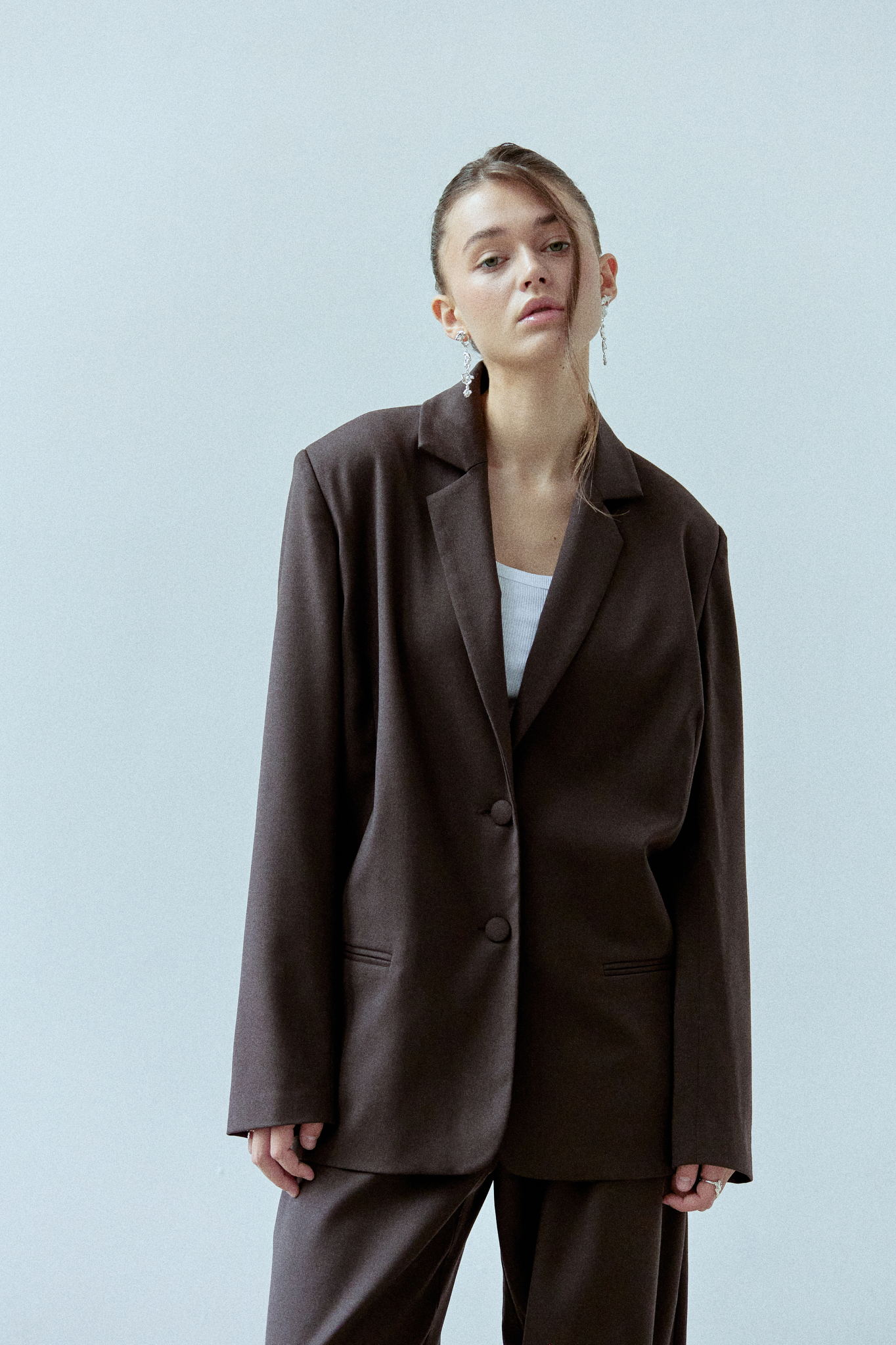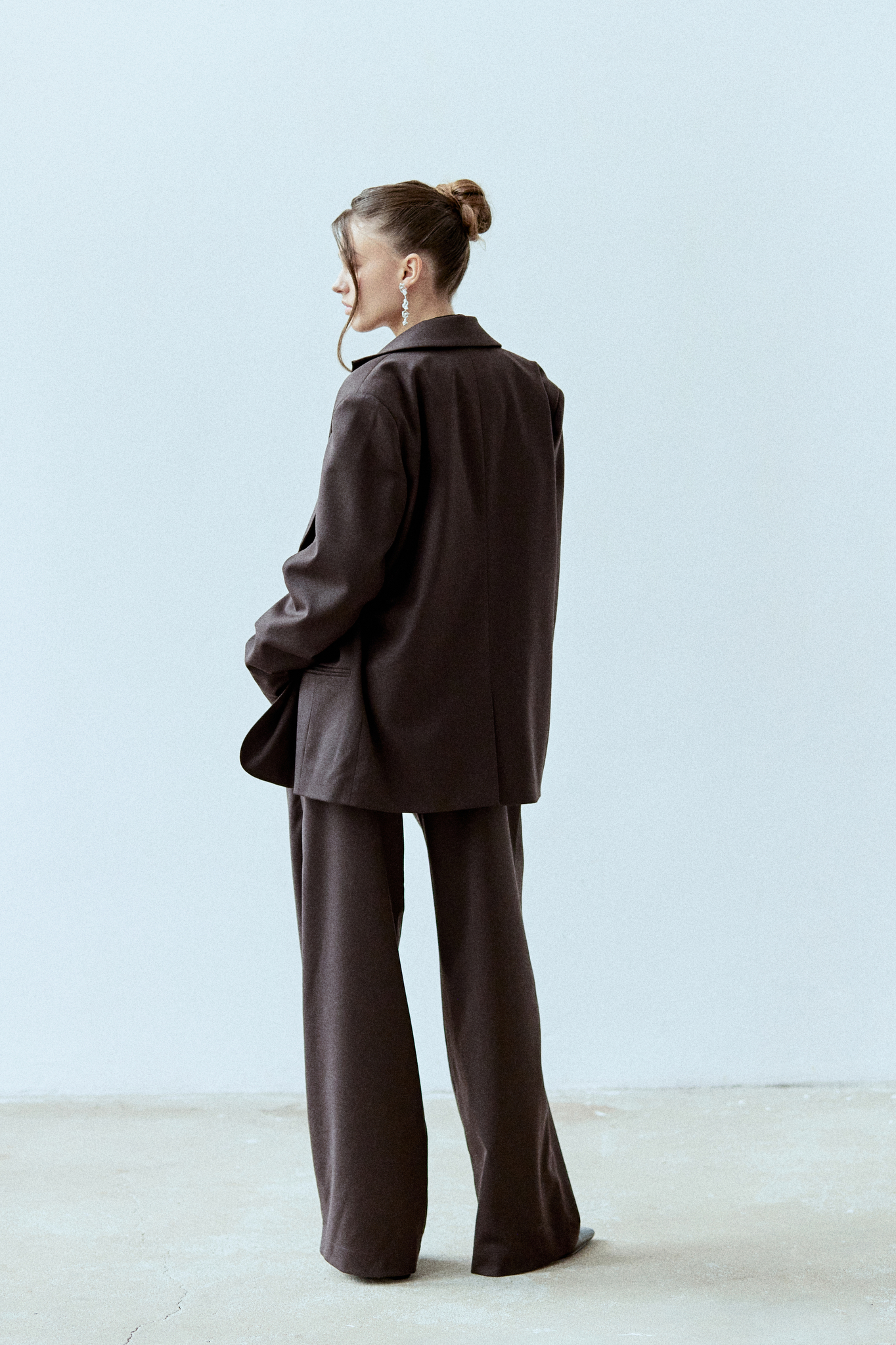 Marynarka Flavia to nowoczesna interpretacja klasycznej, męskiej formy w kobiecym wydaniu. Ma prosty, lekko oversize’owy krój, który nadaje sylwetce swobodny, a zarazem elegancki charakter. Uszyty z wysokiej jakości wełny w głębokim odcieniu brązu, wyróżnia się dopracowanymi detalami – powlekanymi guzikami, kieszeniami bocznymi oraz guzikami przy mankietach. Subtelnie zaznaczone ramiona podkreślają jego strukturę, a rozporek z tyłu zapewnia lekkość i komfort noszenia. Dla pełnego efektu stylizacji połącz go ze spodniami Flavia i koszulą Blanca.